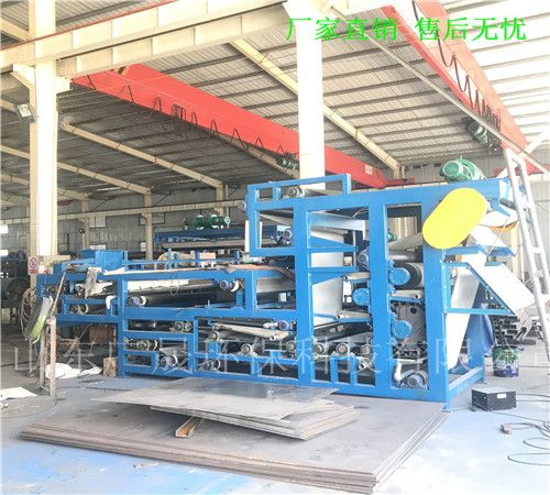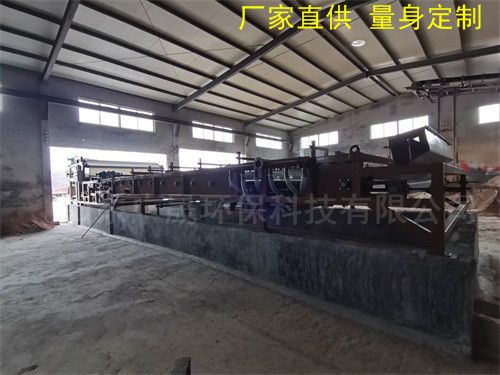 沙场泥浆压滤机是通过两条滤带缠绕在一系列顺序排列、大小不等的辊轮上,利用滤带间的挤压和剪切作用,来脱除料浆中水分的一种压滤设备,具有着能连续作业、自动化程度高、节能、使用维护方便等优点,是一种进行污泥脱水减量化处理的理想设备。